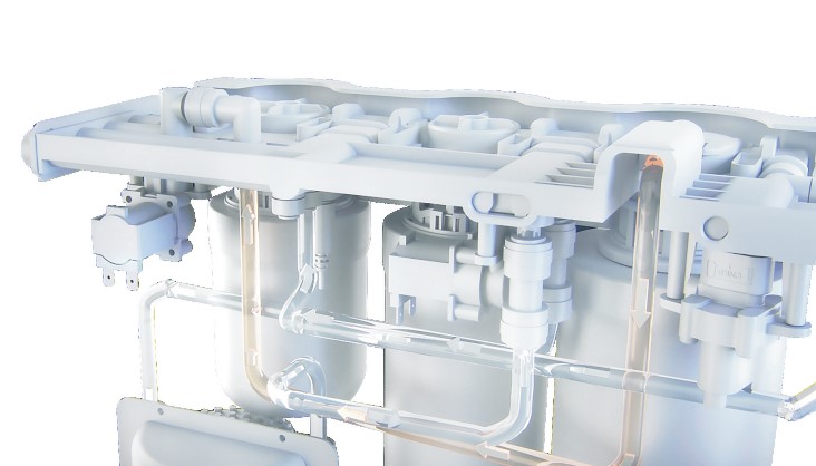 漏水,是凈水器最常見也最讓人煩惱的問題,家樂事獨創的集成水路,采用PPO環保材料一體成型,內部無接頭,從源頭降低了漏水隱患;同時減短了水流長度,有利于水路暢通;耐高壓,防爆破,安全可靠