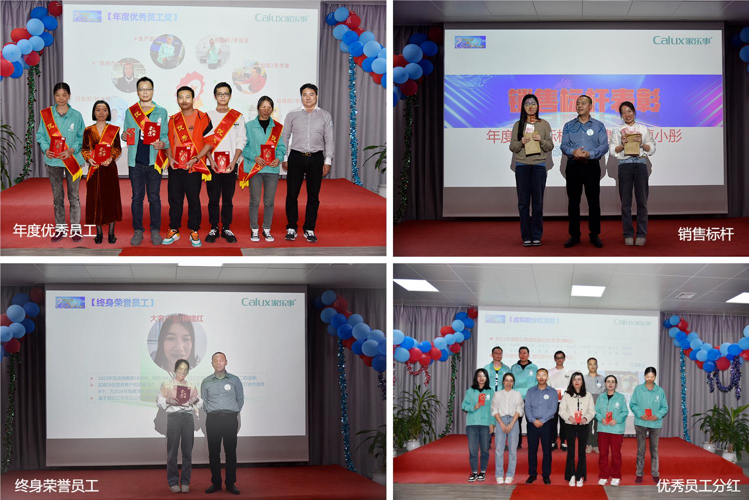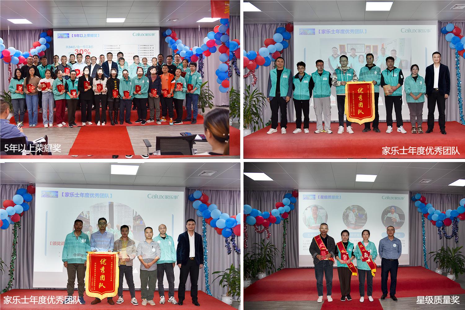 接著,公司對2023年度表現突出的員工和團隊進行了隆重表彰。5年以上榮耀獎、年度標桿獎、優秀團隊獎、星級質量獎、終身榮譽獎,這些在平凡崗位上做出不平凡成績的家樂士人,用實際行動詮釋了家樂士“嚴謹、高效、擔當、奉獻”的價值觀,贏得了公司的贊許,是全體員工優秀的榜樣。