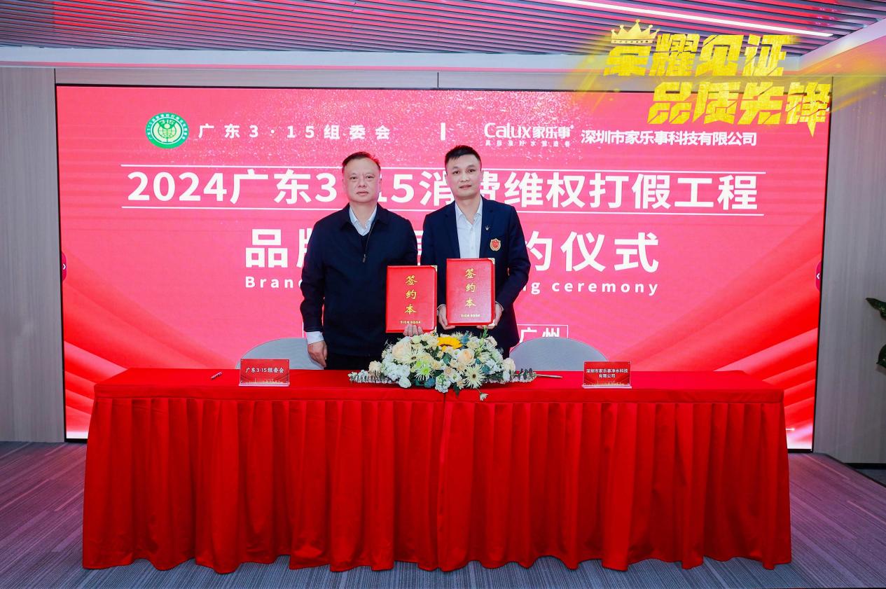 2月26日,家樂事入圍2024廣東3·15消費維權打假工程品牌簽約儀式在廣東廣播電視臺新聞頻道演播室隆重舉行。廣東省3·15組委會相關領導,家樂事董事長陳惠東、總經理劉小平、一號芯總經理吳成興、營銷副總經理殷友、職能中心總監歐陽斌等領導出席簽約儀式。